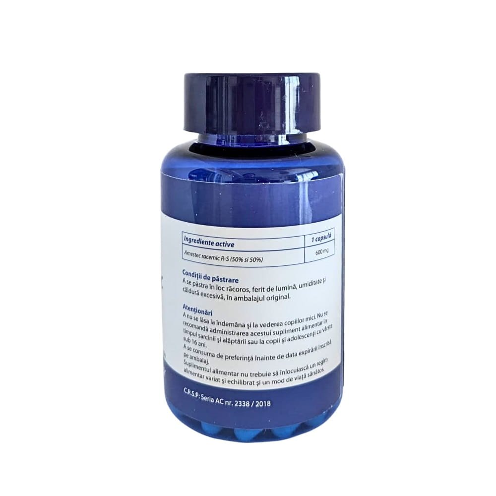 Acid R-S Alfa Lipoic (amestec Racemic conform buletinului de analiză), 60 capsule, 600 mg/capsulă