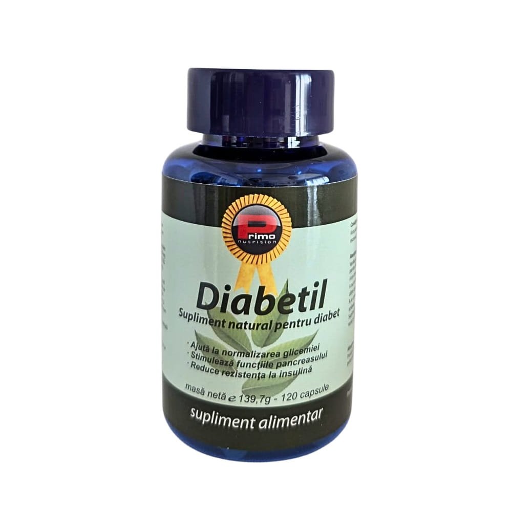 Diabetil este un supliment alimentar pentru diabet unic pe piață. Acesta este alcătuit dintr-un complex de plante, vitamine și minerale, în concentrații importante, ce acționează în sinergie asupra cauzelor și simptomelor diabetului. Diabetilul contribuie la reglarea glicemiei și în timp, reduce până la eliminare manifestările respectiv complicațiile asociate cu diabetul. Aceste simptome constă în neuropatii, boli degenerative ale ochiului sau accidente vasculare. Mai mult, produsul poate ajuta pe termen lung la optimizarea funcțiilor pancreasului, dereglate la bolnavii de diabet.