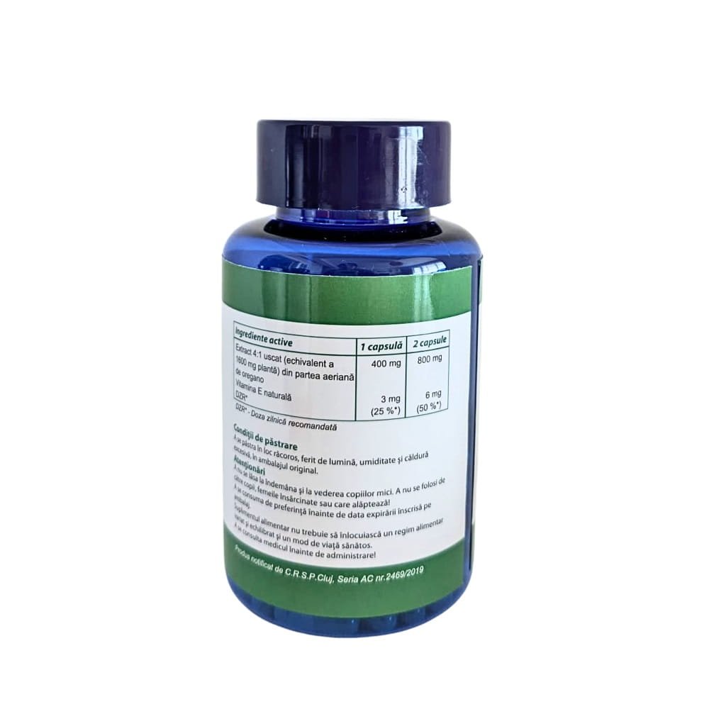 Compoziție: oregano sălbatic (Origanum vulgare) extract 4:1, 400 mg/capsulă (echivalent a 1600 mg/capsulă), vitamina E naturală 3 mg/capsulă